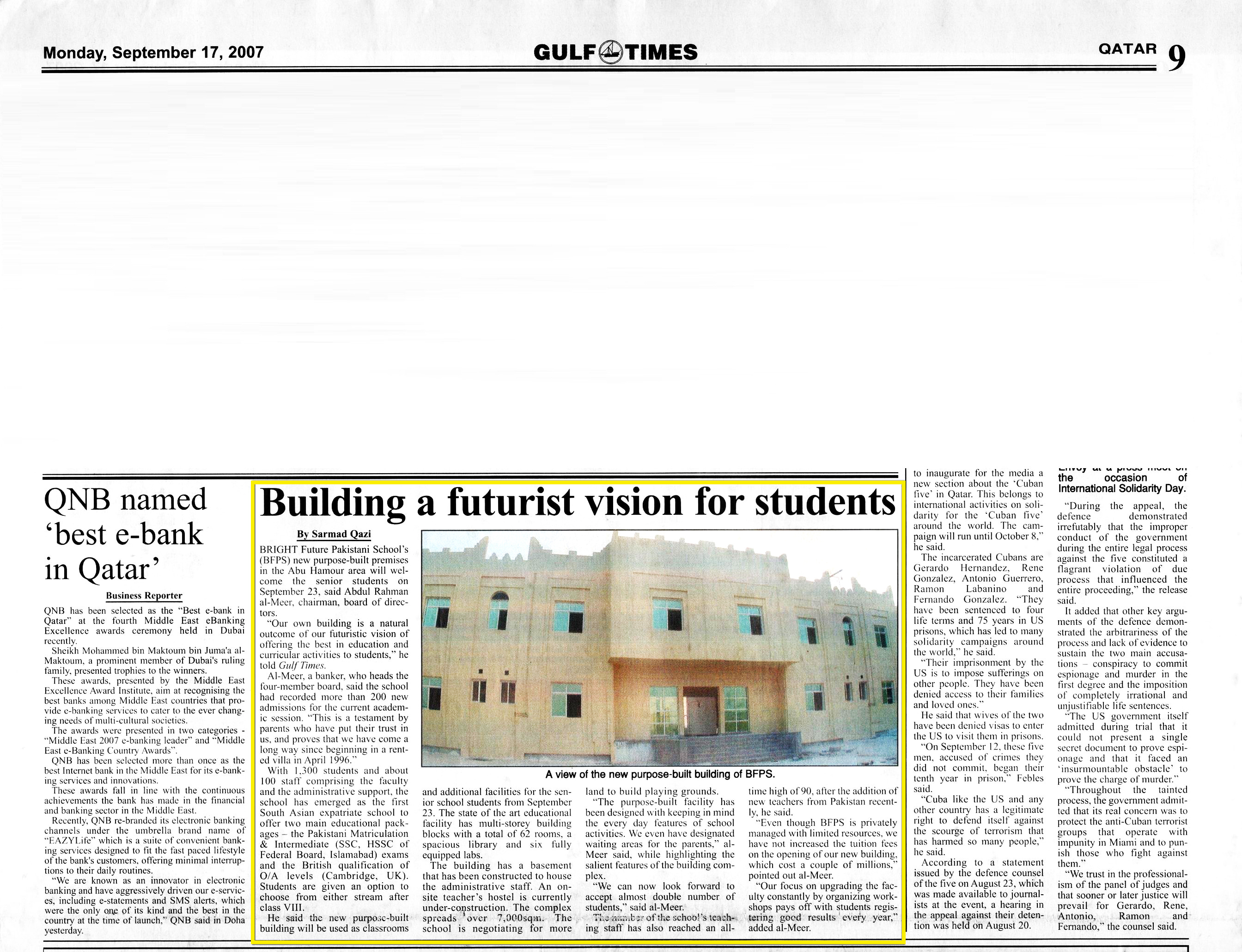 BRIGHT Future Pakistani School’s (BFPS) new purpose-built premises in the Abu Hamour area will welcome the senior students on September 23, said Abdul Rahman al-Meer, chairman, board of directors.