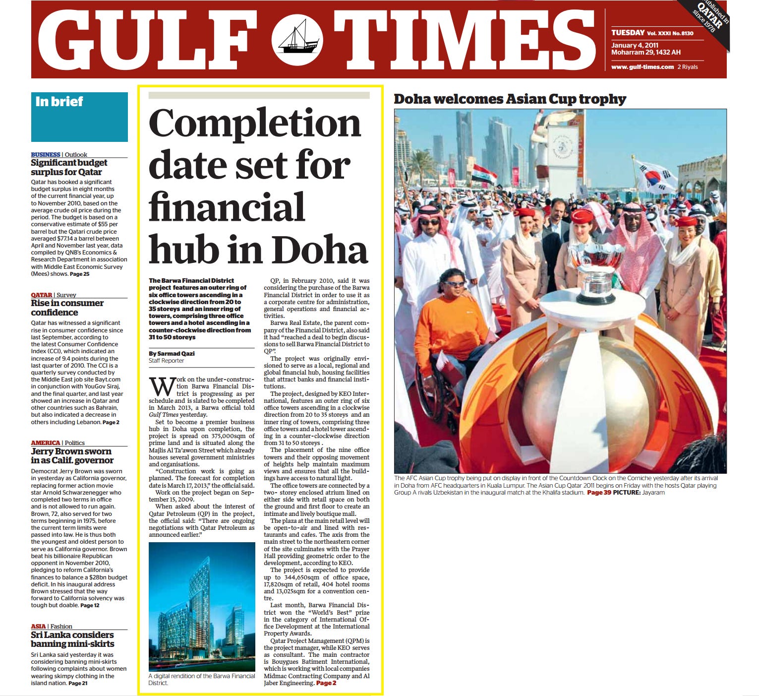 QP, in February 2010, said it was considering the purchase of the Barwa Financial District in order to use it as a corporate centre for administration, general operations and financial activities. Barwa Real Estate, the parent company of the Financial District, also said it had “reached a deal to begin discussions to sell Barwa Financial District to QP”.