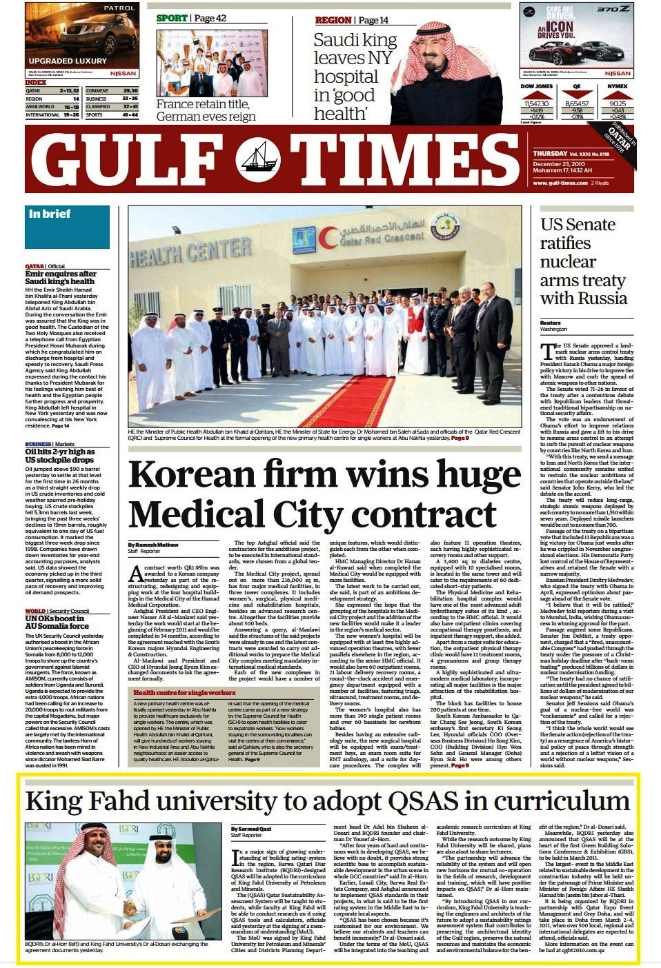 Original Gulf Times clipping: King Fahd university to adopt QSAS in curriculum