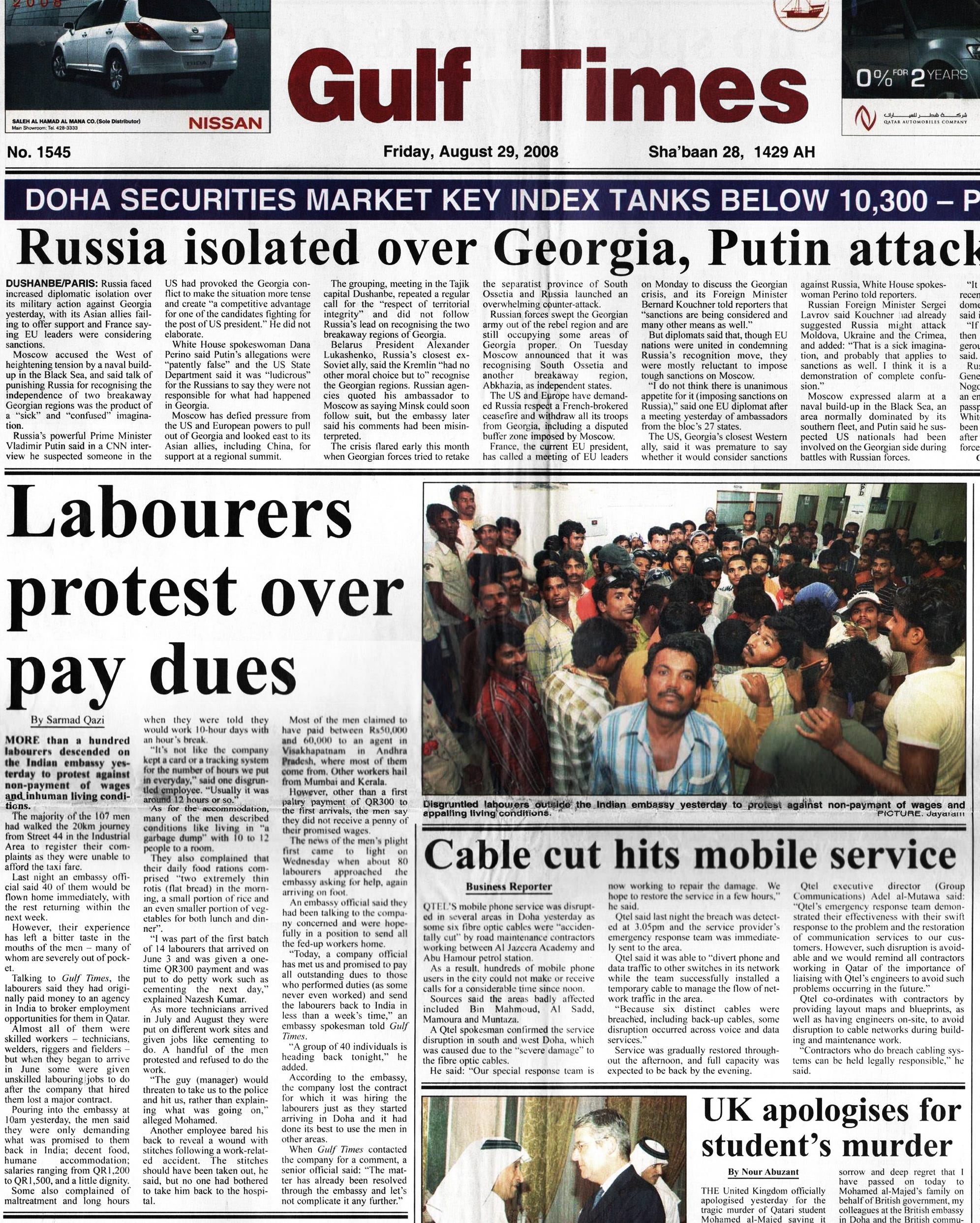 Pouring into the embassy at 10am yesterday, the men said they were only demanding what was promised to them back in India; decent food, humane accommodation; salaries ranging from QR1,200 to QR1,500, and a little dignity.