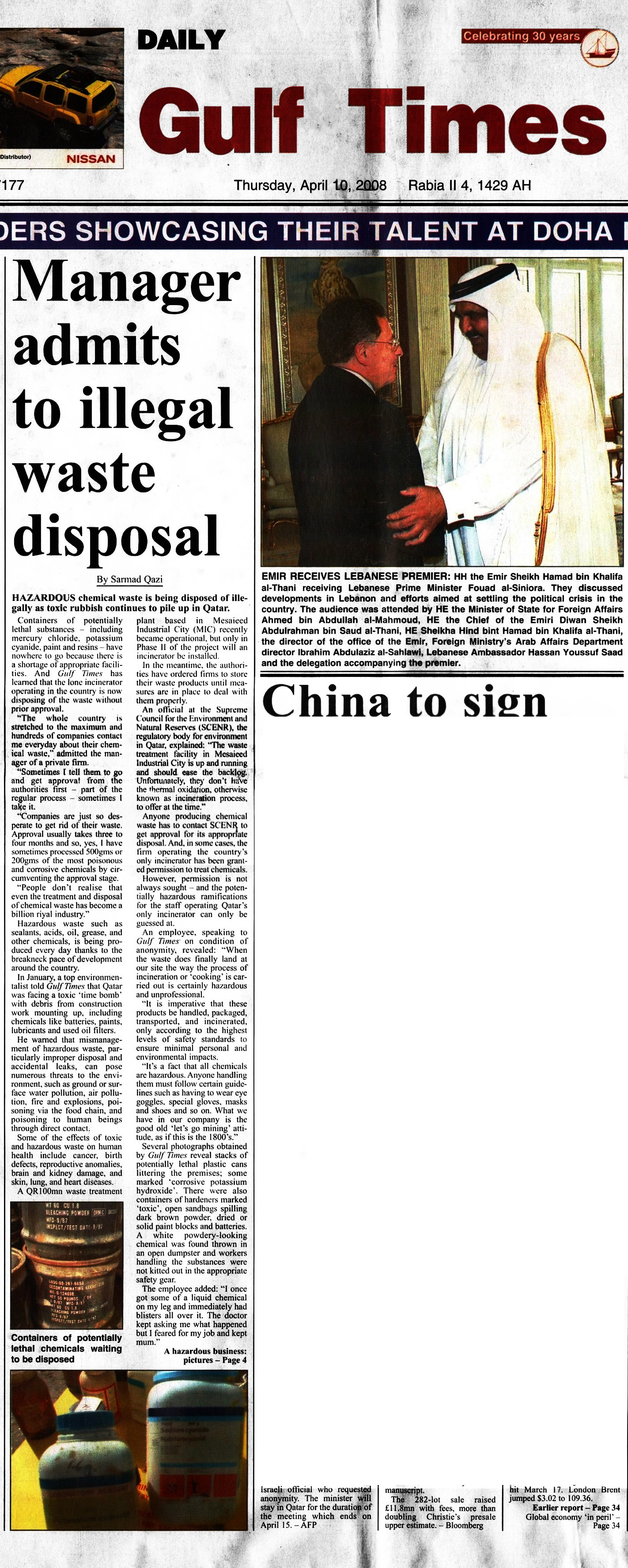 HAZARDOUS chemical waste is being disposed of illegally as toxic rubbish continues to pile up in Qatar.