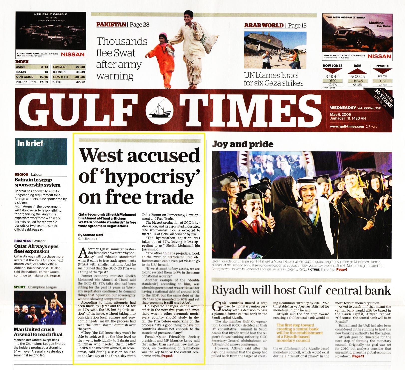 Qatari economist Sheikh Mohamed bin Ahmed al-Thani criticises Western “double standards” in free trade agreement negotiations